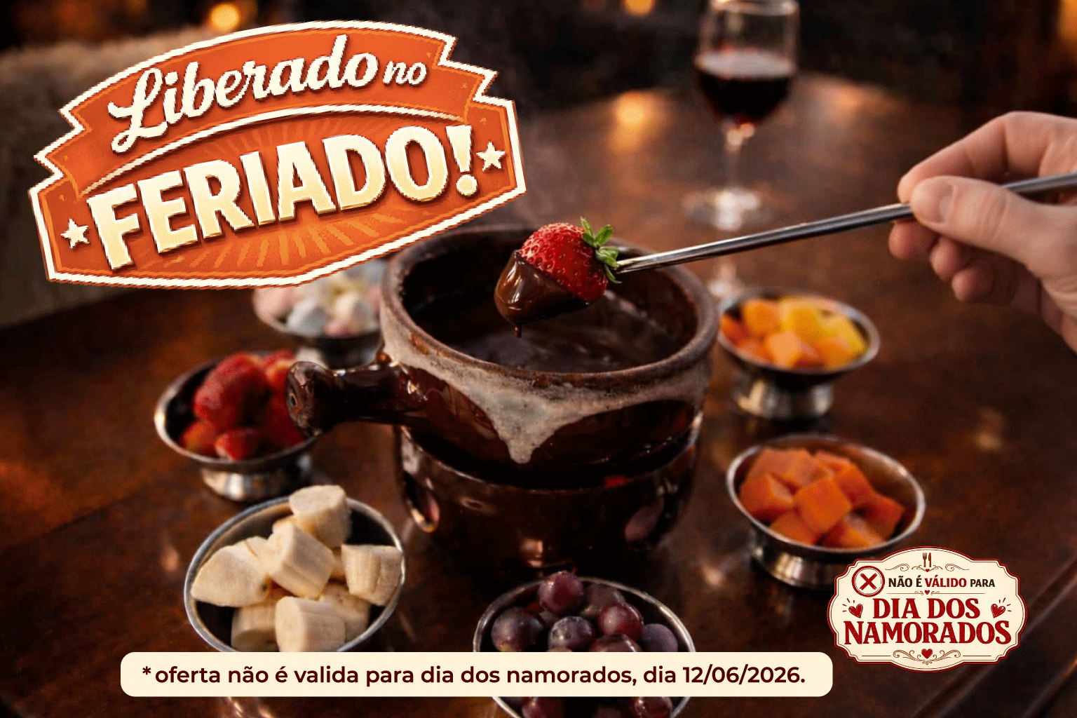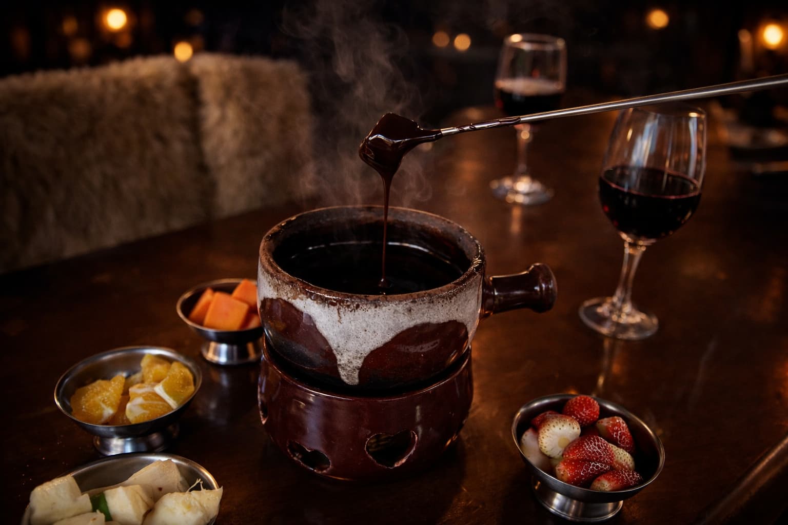 Famoso por sua sequência de fondue, o Chateau de la Fondue é o destino perfeito para quem busca uma experiência completa. Oferecemos o fondue tradicional e na pedra — com queijo, carne e chocolate — servidos de maneira impecável, para que cada detalhe contribua com a experiência inesquecível.